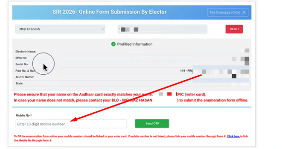 जिसको BLO से SIR फॉर्म नहीं मिला है वह Online SIR का फॉर्म भर सकते हैं लेकिन आपको पहले अपने वोटर आईडी कार्ड से मोबाइल नंबर लिंक करना होगा अगर पहले से आपका मोबाइल नंबर लिंक हैं तो आपको इस तरह से Online Sir फॉर्म भरकर Submit कर देना है जैसे यहाँ पर एक एक स्टेप करके बताया हैं पढ़ना शुरू कीजिए। Sir form Kaise bhare online step by step .
