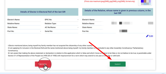 सभी जानकारी दर्ज करने के बाद आपको स्क्रॉल करके नीचे आना है और नीचे आने पर आपको दो ऑप्शन मिलेंगे आपको पहले Preview पर क्लिक करके देख लेना है क्या आपकी सभी जानकारी सही से दर्ज हो गई है अगर सभी जानकारी दर्ज हो गई है तो आपको अब इस फॉर्म को सबमिट कर देना हैं, SIR Form Kaise Bhare ? आपको अच्छे से जानकारी मिल गई होगी ।