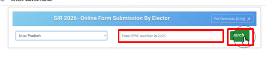 राज्य का नाम चयन करने के बाद आपको अपने वोटर आईडी कार्ड का एपिक नंबर को लिखना हैं उसके बाद Search बटन पर क्लिक कर देना हैं,